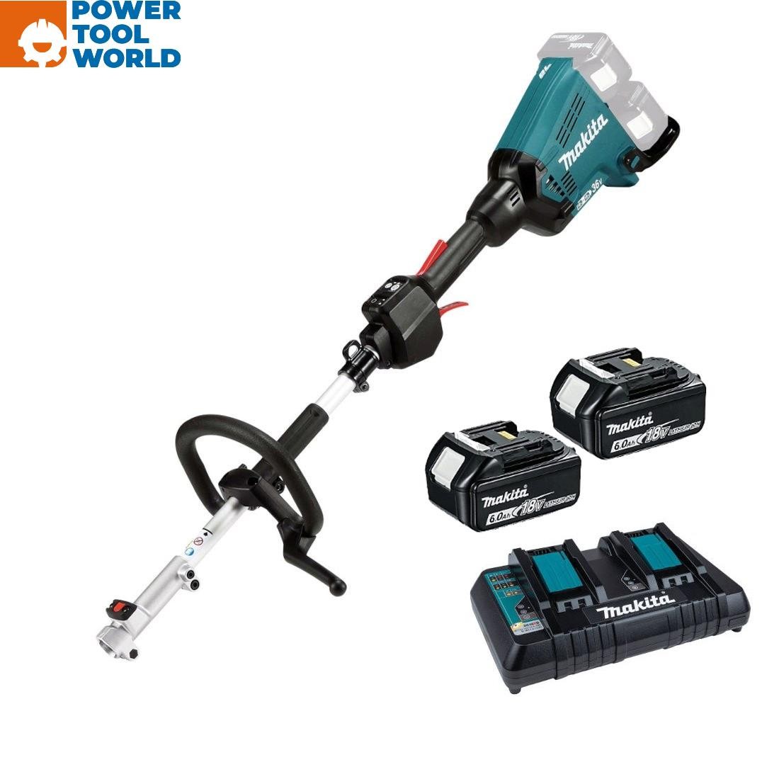 Makita DUX60 Twin 18v LXT Cordless Brushless Split Shaft Garden Multi Tool Set 2 x 6ah Li-ion Battery Charger