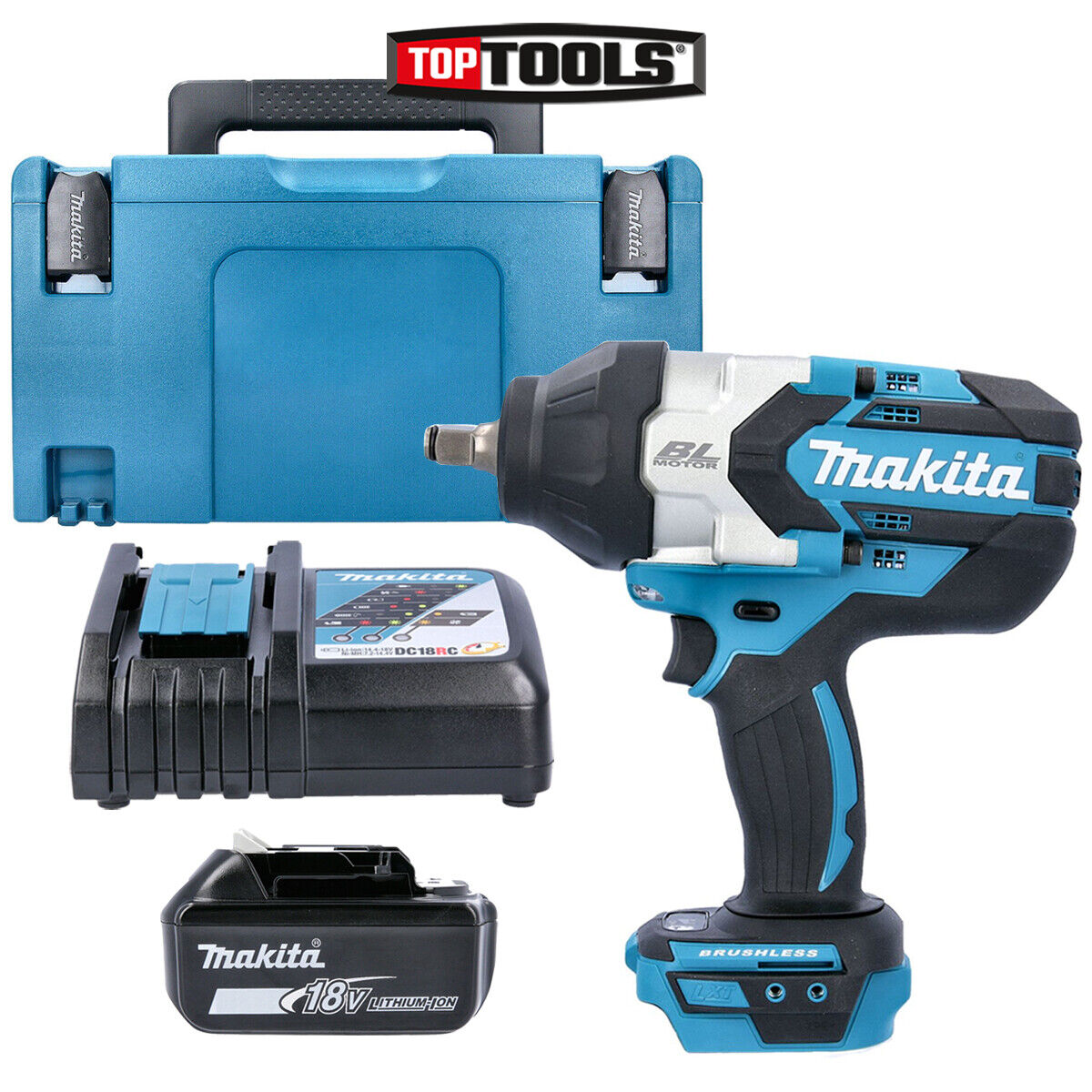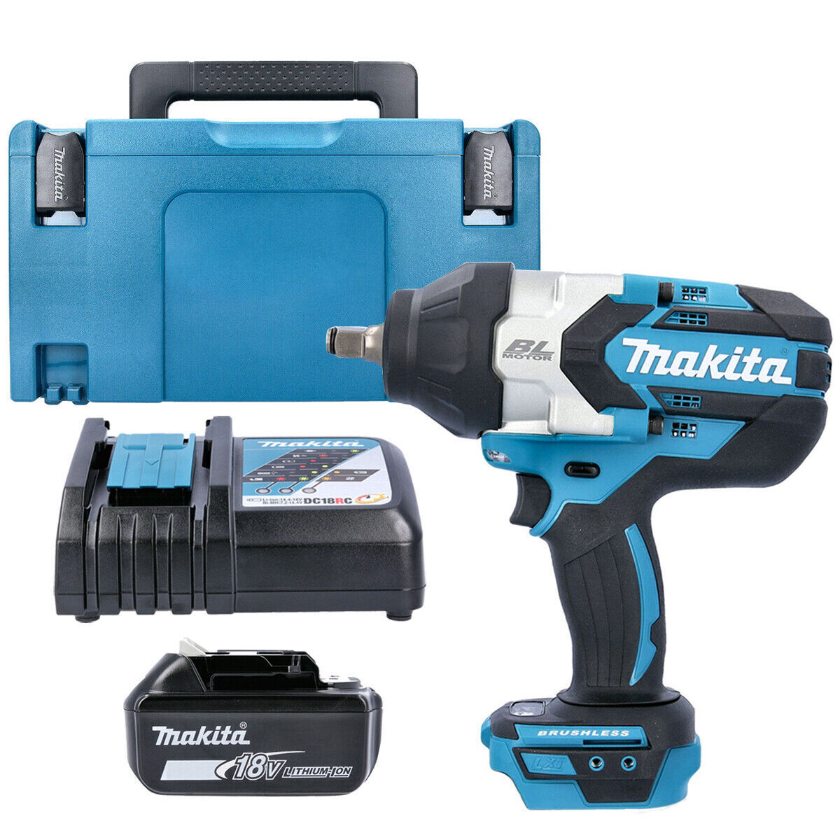 Makita DTW1002 18V BL Impact Wrench With 1 x 5Ah Battery, Charger, Case & Inlay