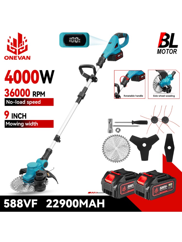 ONEVAN 9Inch Brushless Electric Lawn Mower 36000RPM Cordless Grass Trimmer Foldable Cutter Garden Tool For Makita Battery Pin