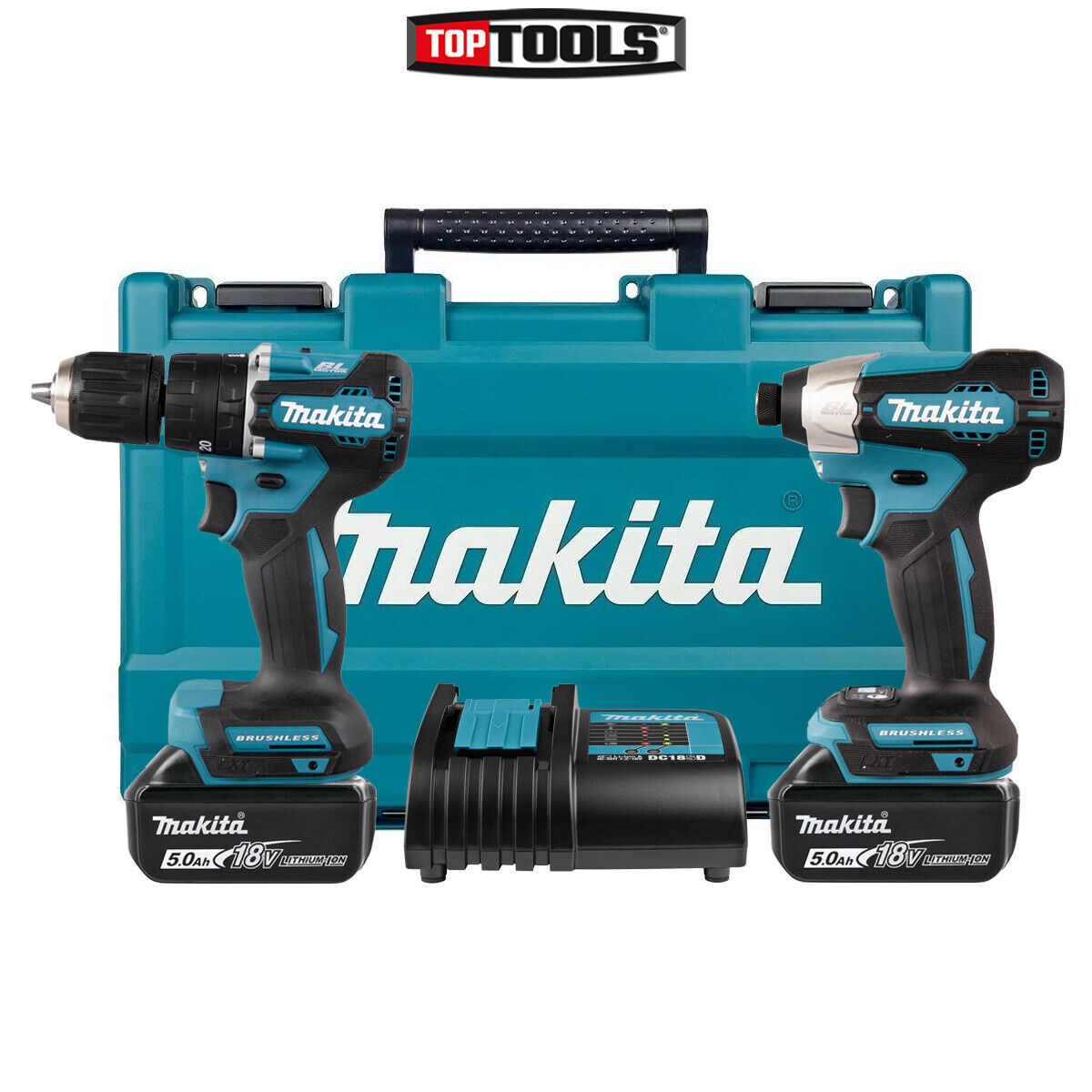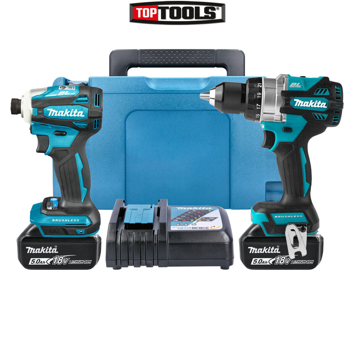 Makita DLX2414ST 18v LXT Cordless Brushless Combi Drill and Impact Driver Kit 2 x 5ah Li-ion Battery Charger Case
