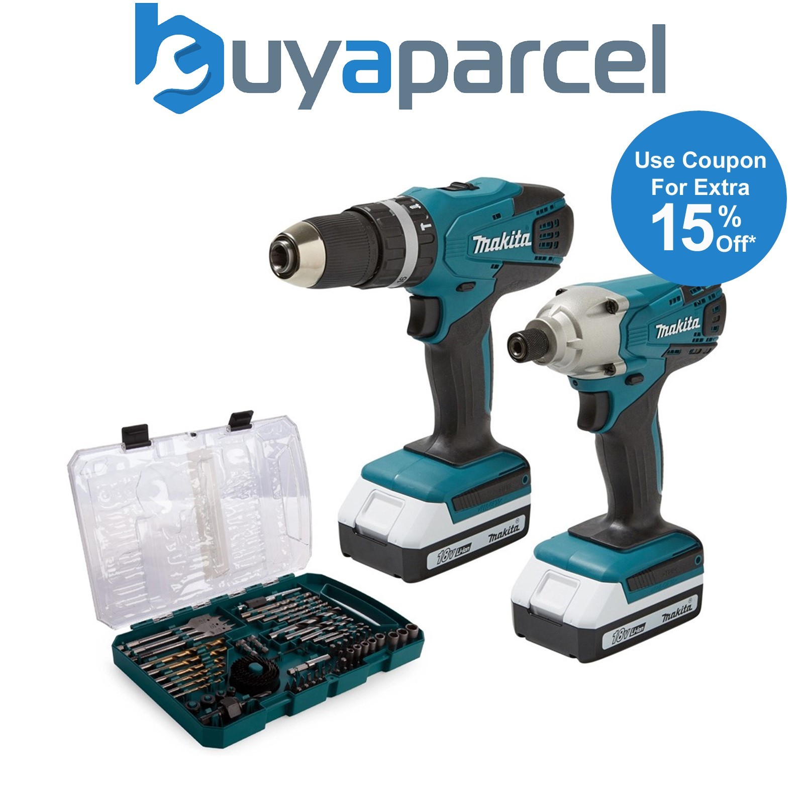 Makita 18v Cordless Li-ion Combi Hammer Drill Impact Driver Twin Pack & Bit Set
