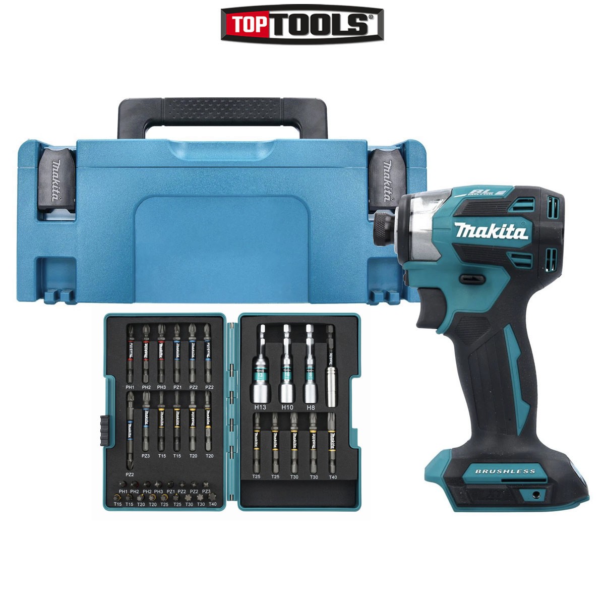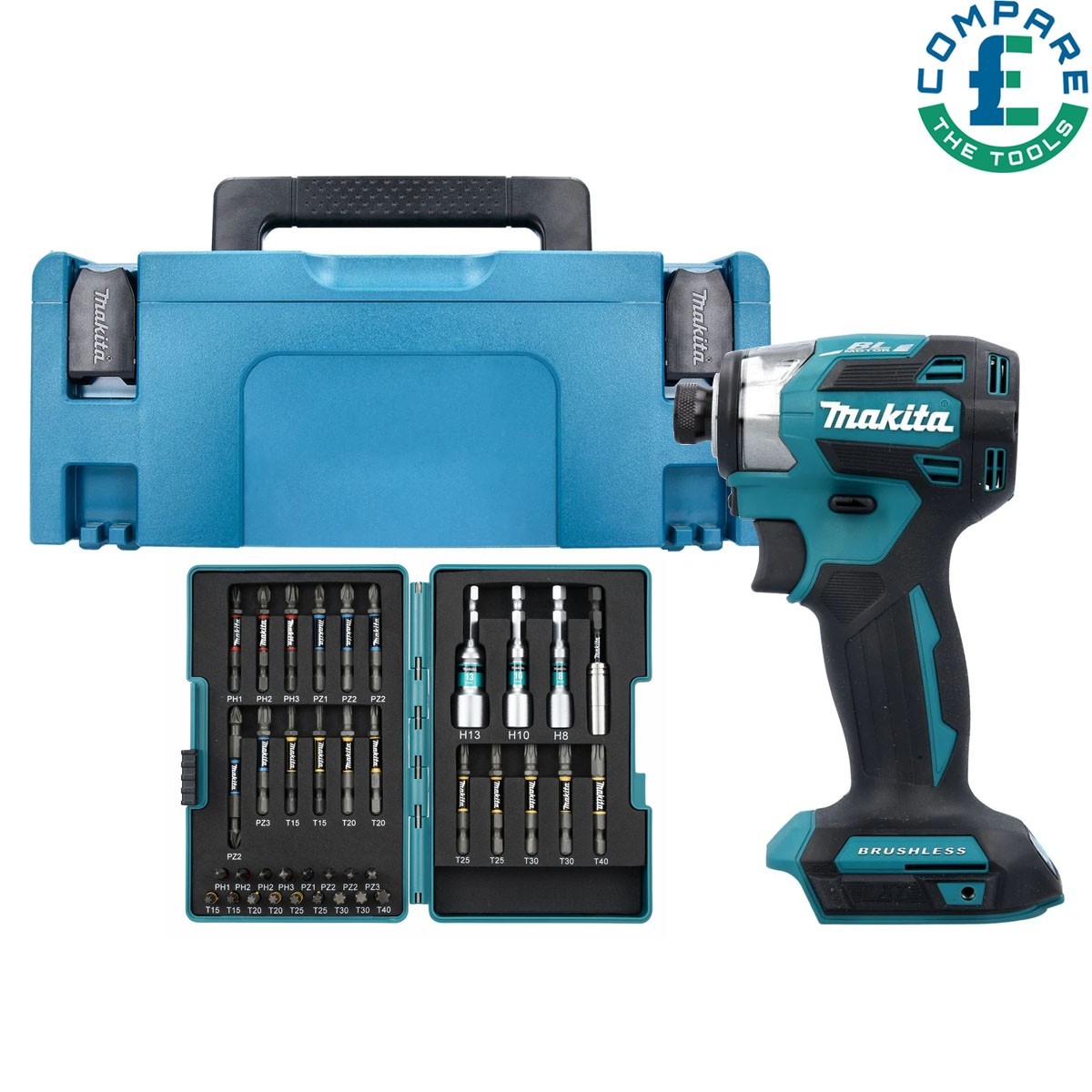 Makita DTD173ZJX2 18V Cordless BL Impact Driver+Makpac Case & 38 Pieces Bit Set