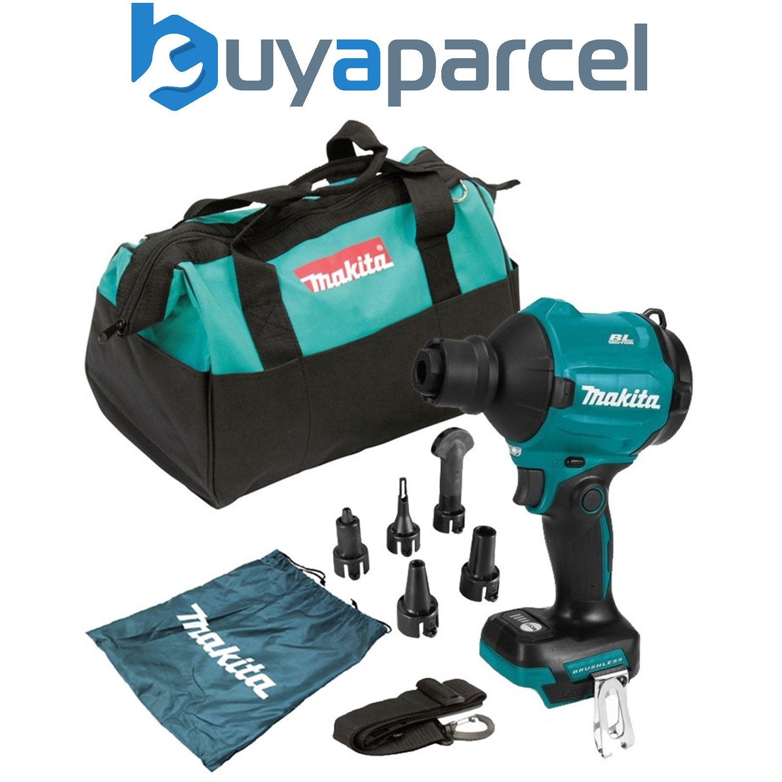 Makita DAS180Z 18v Brushless Dust Blower Inflator Deflator LXT Nozzles + Makpac