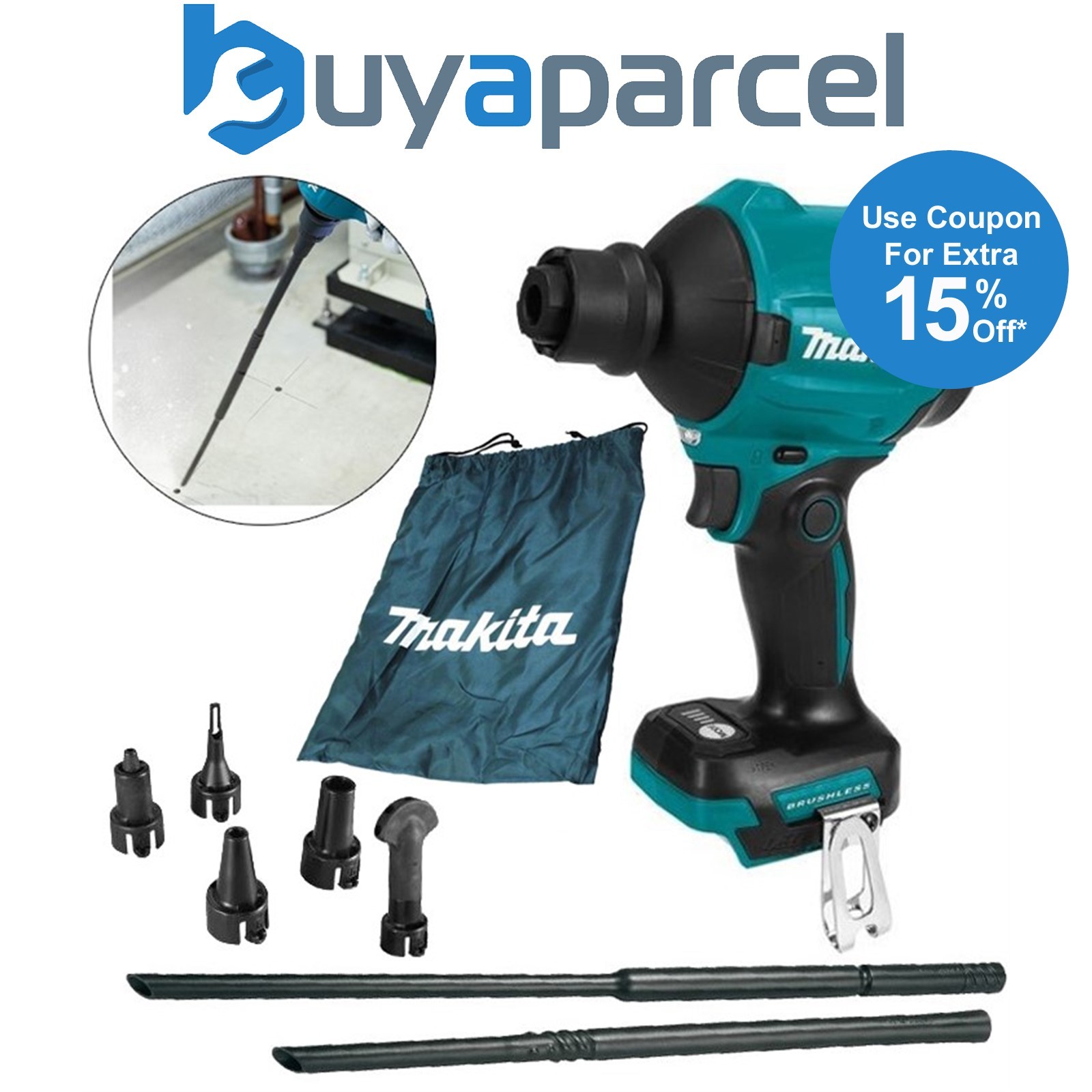 Makita DAS180Z 18v Brushless Dust Blower Inflator Deflator LXT + 6 Nozzles +Long