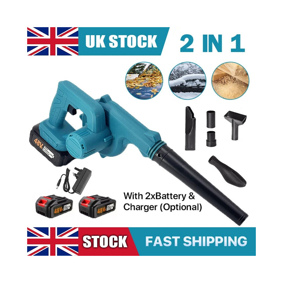 (Blue, Two Batteries) 2 in 1 Cordless Electric Air Blower Vacuum Suction Dust Collecter Hose Computer Cleaner Leaf Sweeper W/ 1/2 Battery For Makita