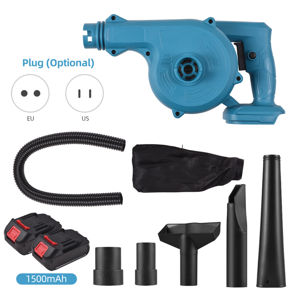 (Two Batteries) 2 in 1 Cordless Electric Air Blower Garden Leaf Dust Car Cleaner Tool W/ None/1/2pcs Battery Also for Makita 18V Battery