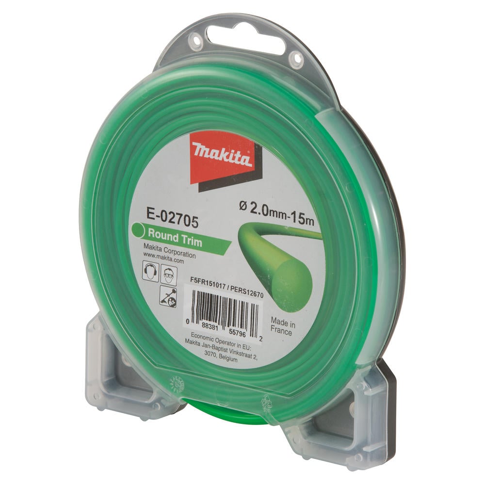 Makita E-02705 Mowing Line Round 2.0 mm x 15 m Round Trim Trimmer Line, Nylon, Green, for Strimmer and Brush Cutters