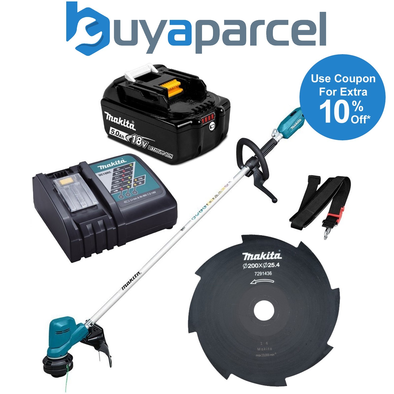 Makita DUR194RTX2 LXT 18v Cordless Grass Brushcutter Line Trimmer + Blade +1x5ah