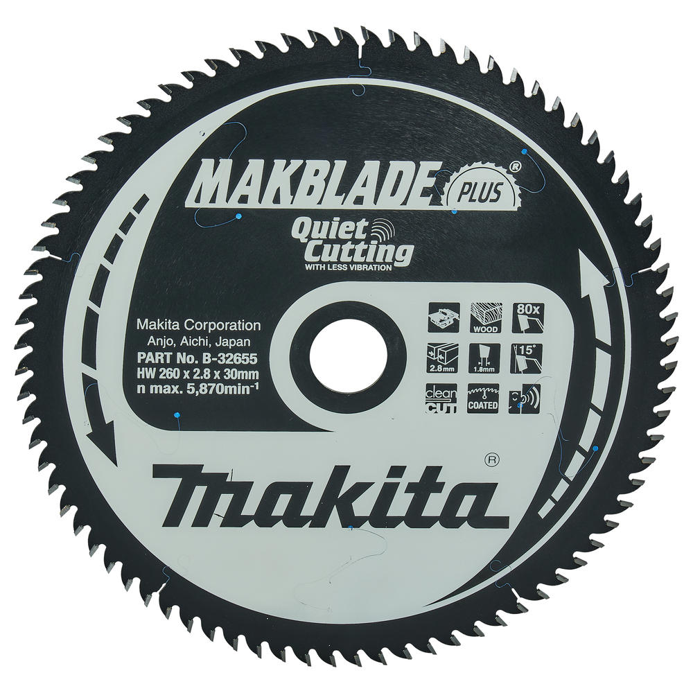 Makita MAKBLADE PLUS Circular Table Saw Blades for Wood Cutting 260mm 80T 30mm