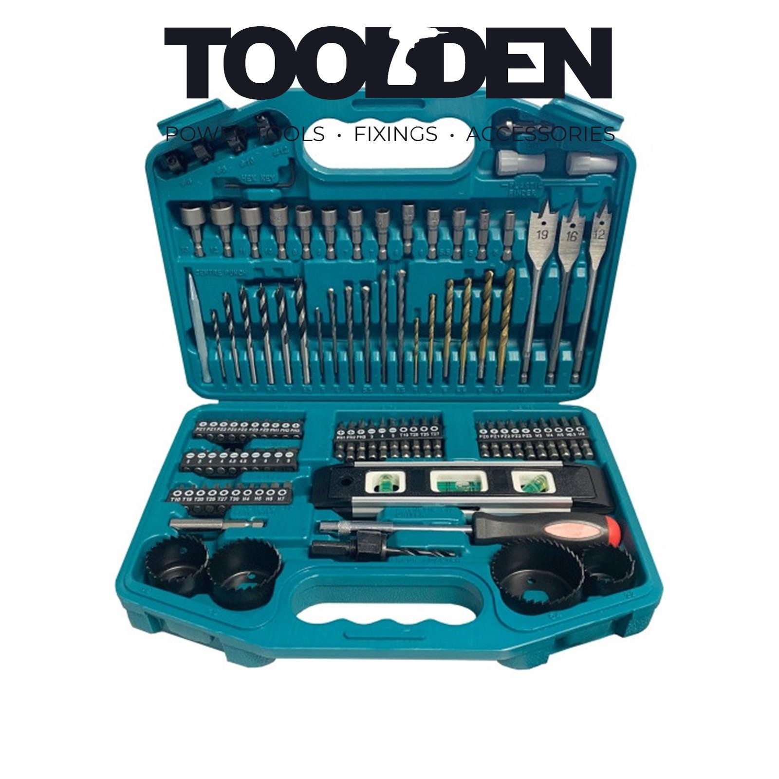 Makita 100 Piece Power Drill Bit Set Screwdriver Set - Holesaw Masonry HSS PZ2 +