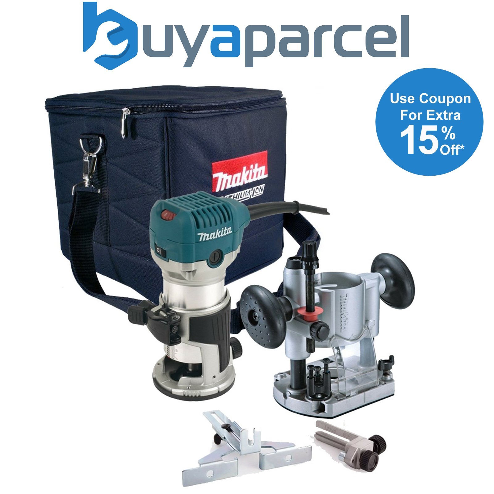 Makita RT0700CX2J 240V 1/4" Router Laminate Trimmer Guide Plunge Base + Makpak