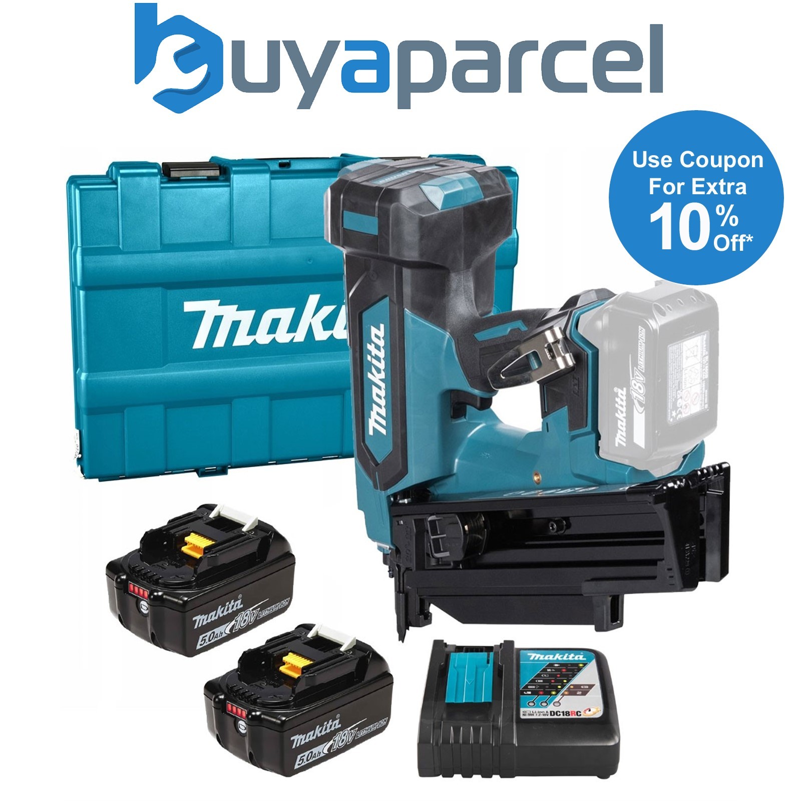 Makita DBN600RTJ 18V LXT Cordless Second Fix Straight Nail Gun with 2x 5.0Ah Batteries