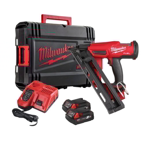 Milwaukee M18 FN15GA-202X 18V Fuel 15 Ga Angled Second Fix Finish Nailer with 2x 2.0Ah Batteries