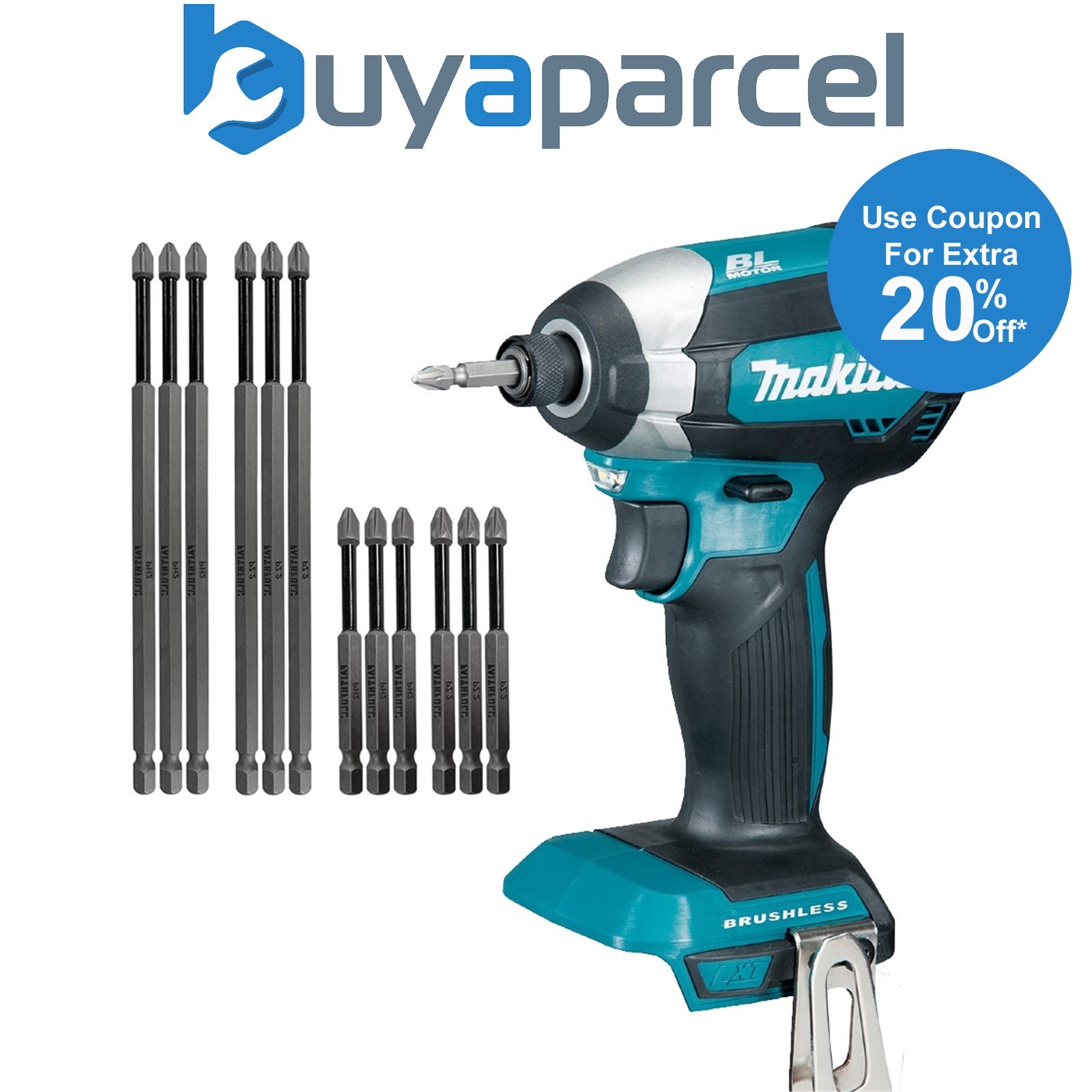 Makita DTD153Z 18V LXT Cordless Brushless Impact Driver + 12 Piece Long Bit Set
