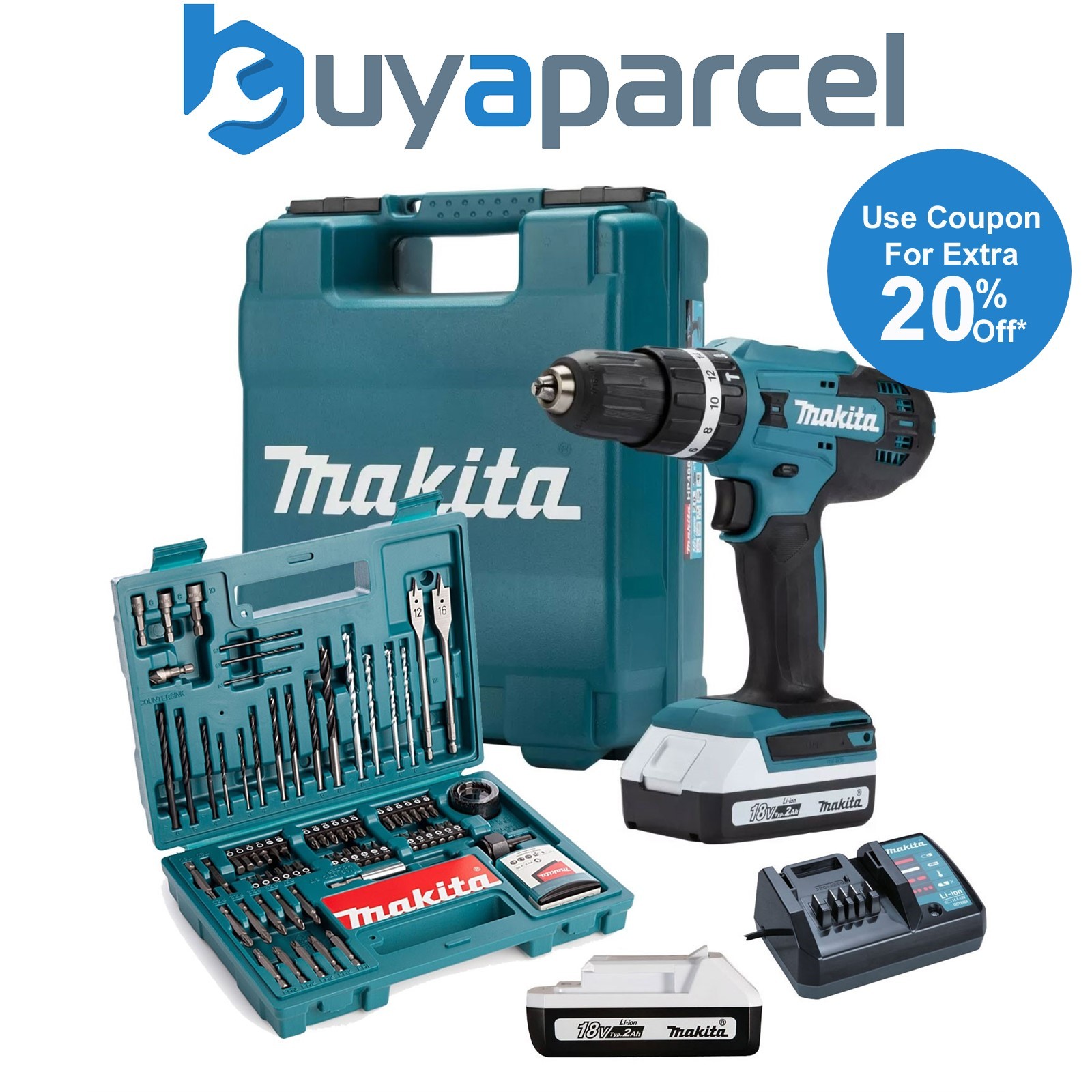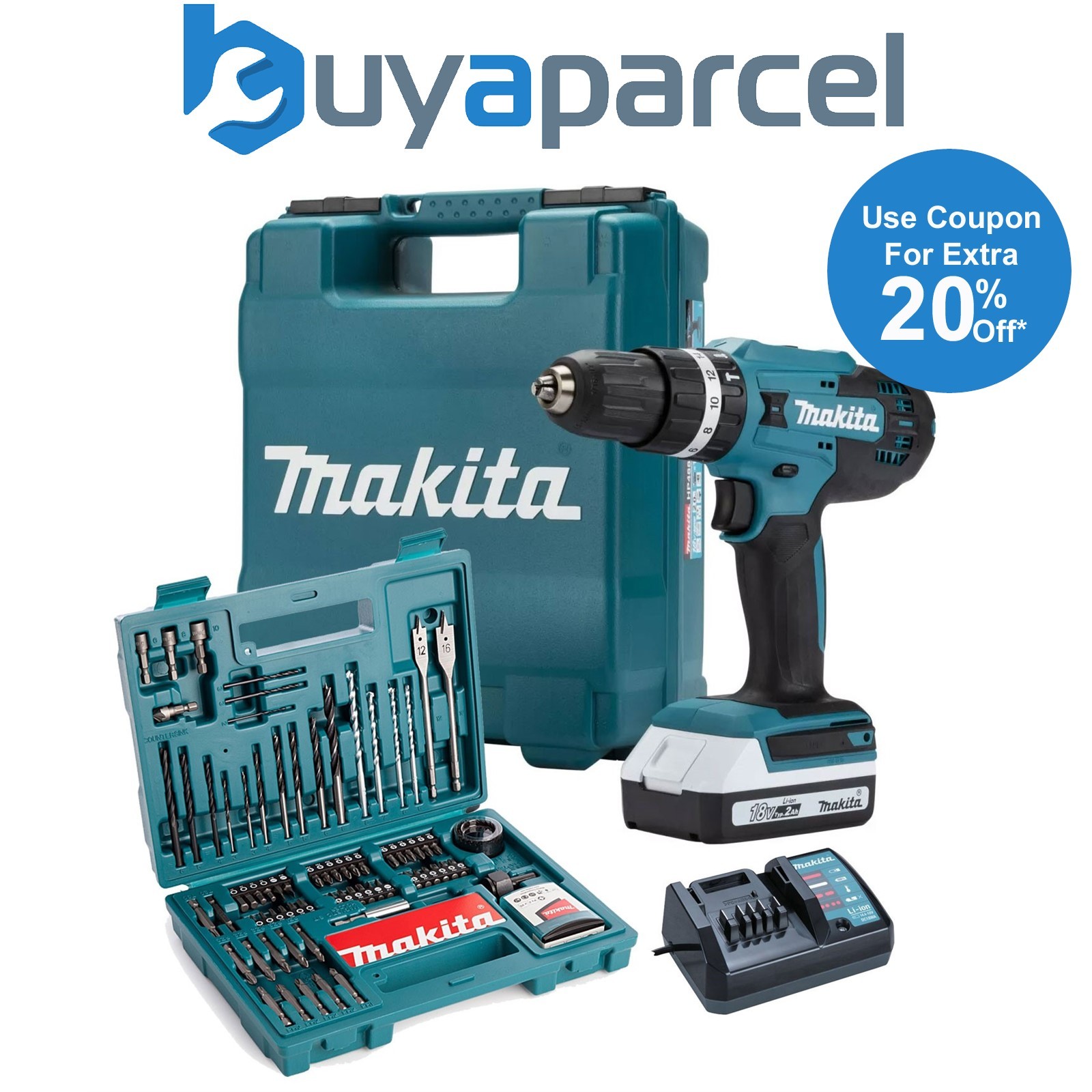 Makita HP488DWA 18v Lithium Combi Hammer Drill 1x 2Ah - 100 Screwdriver Bit Set