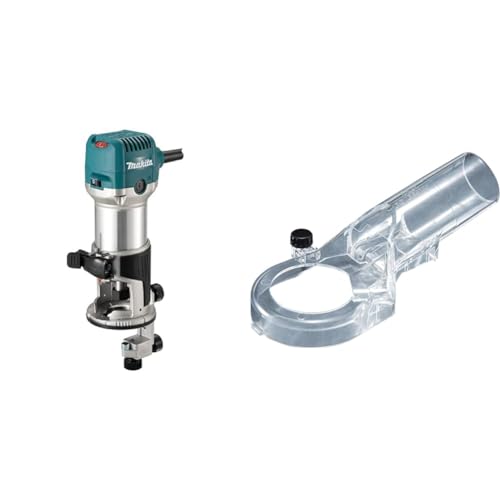 Makita RT0702CX4/2 240V ¼” Router Trimmer Supplied with Trimmer Base & 194733-8 Dust Nozzle Set Mt361/Rp0900, Multi-Colour