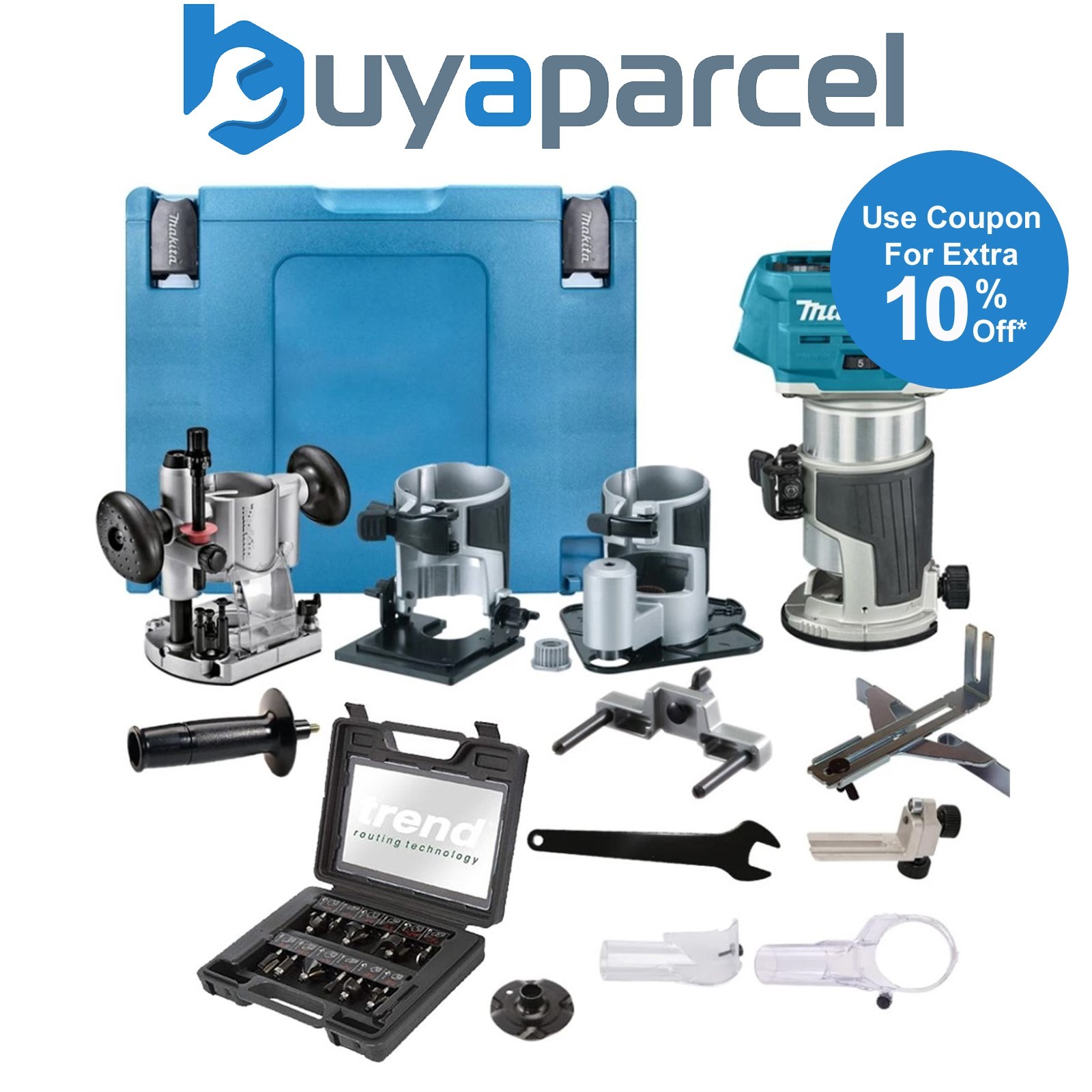 Makita DRT50Z 18V LXT Cordless Brushless Laminate Router Trimmer + Trend 12P Set