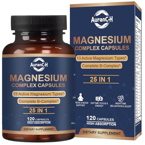 Magnesium Glycinate Complex 1000mg, 25 in 1 Magnesium Supplement with Glycinate Citrate Malate Oxide Taurate Aspartate Orotate Magnesiuum Relaxation,Muscle,Heart Support, Vegan 120 Capsules