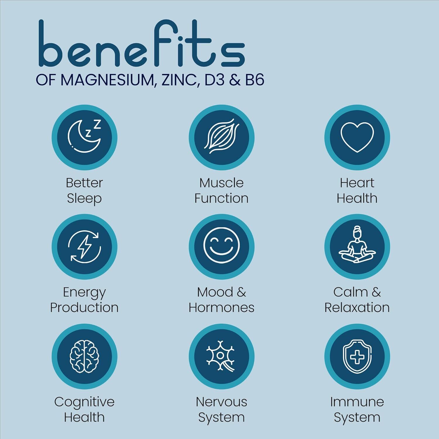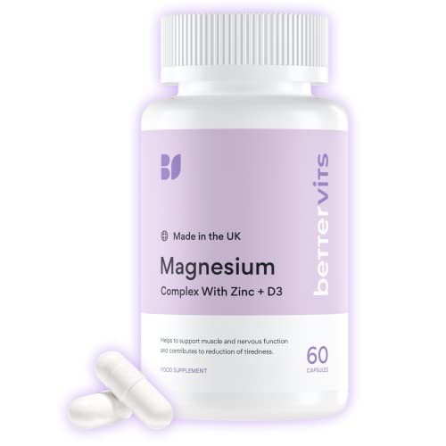 Bettervits Magnesium Glycinate Complex with Citrate, Malate, Zinc & Vitamin D3 | Magnesium Supplements for Muscle Recovery, Heart Health & Sleep Support - High Absorption | 60 Capsules