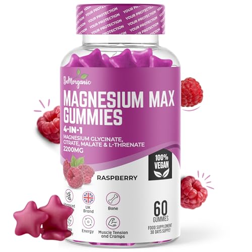 Magnesium Gummies for Adults High Absorption 252.6mg (60 Gummies) Elemental Magnesium from Citrate Malate Glycinate Vegan Raspberry Flavour Sleep Relaxation & Muscle Support Non-GMO Gluten-Free