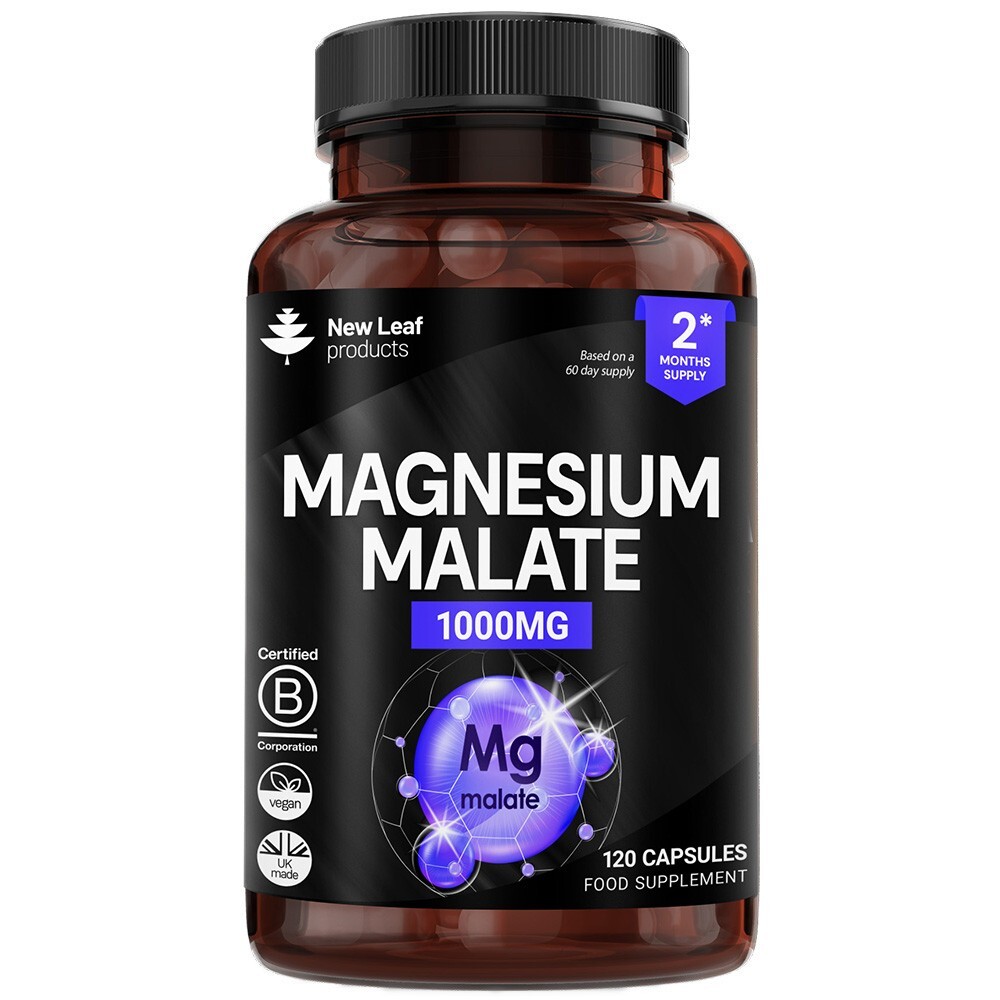 Magnesium Malate Capsules (120) High Strength 1000mg Bones & Sleep Support Vegan
