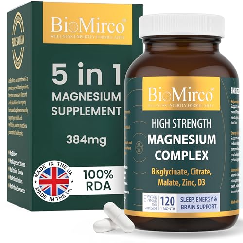 Magnesium Complex Supplement, Magnesium and Zinc, D3 Supplements, Glycinate/Bisglycinate, Malate, Citrate 5 in 1, Muscle & Bone, Energy Support & Sleep Aid, High Strength 100% RDA, UK Made Supplement
