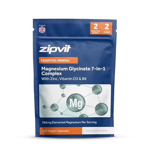 Zipvit Magnesium Glycinate 7-in-1 Complex, 1800mg with 388mg Elemental, High Absorption with Bisglycinate, Malate, Citrate, Oxide, Plus Vitamin D3, B6 & Zinc, 120 Capsules, Vegan Magnesium Supplements