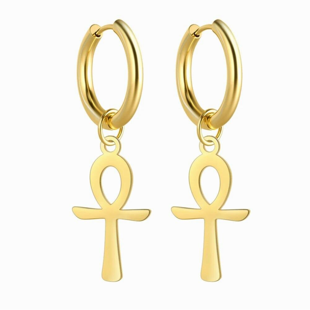 Egyptian Ankh Drop Earring Vintage Cross Women Dangle Earrings Stainless Steel Male Punk Jewelry