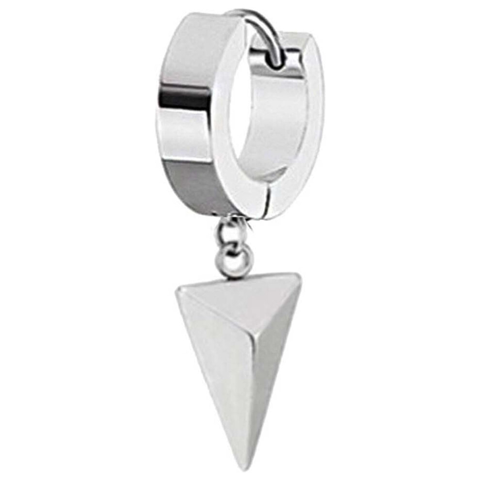 (White) SMALL TREE SINGLE SPIKE ONCH EARRINGS FOR MEN HUGGIE HINGED STAINLESS STEEL MALE JEWELRY