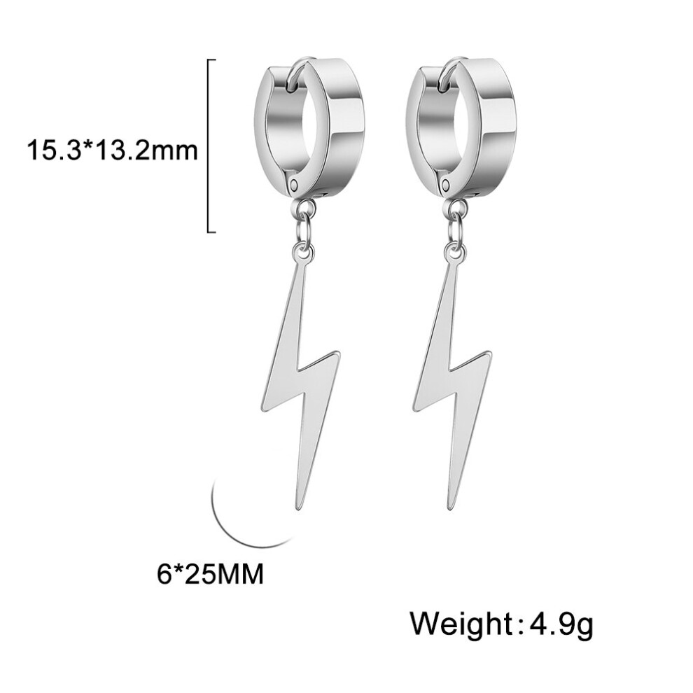 (silver) 1pc Punk Earrings Fashion Lightning Pendant Personality Male Women Men Jewelry Titanium Steel