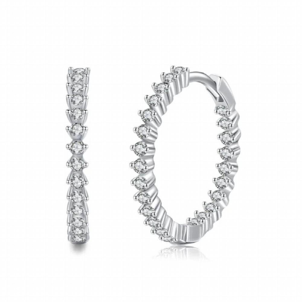 Female Male White/Black Zircon Big Circle Hoop Earrings For Women Silver Tiny Stone Round Crystal Earrings Vintage