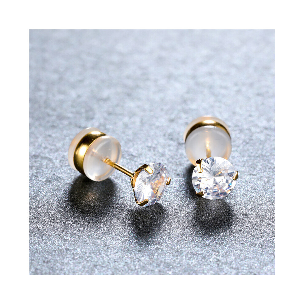1 Pair Of Male And Female Universal Earrings Stainless Steel Piercing Accessories AA Zircon With Round Cake Earrings Four claw Zircon Earrings