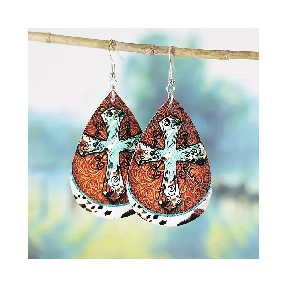 1pair Retro Antique Style Cross PU Leather Earrings Double sided Jewelry Male Gift