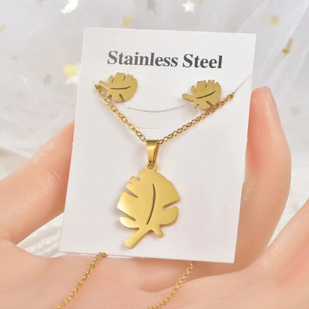 Versatile Stainless Steel Necklace Studs Earrings Male and Female Geometric Animal Two Piece Gift Set