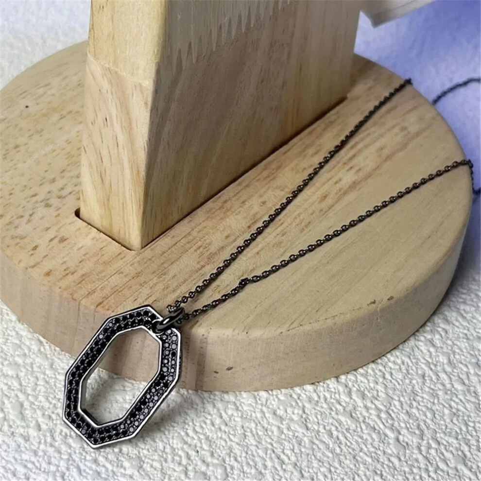 (M4) S Original Hoop Earrings New Trendy Black Crystal Male Geometry Necklace Charm Fine Jewelry Sets for Women Luxury Party Jewelry