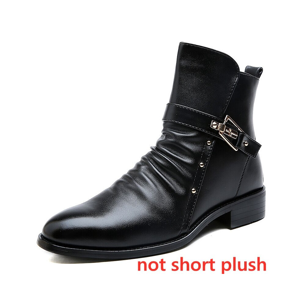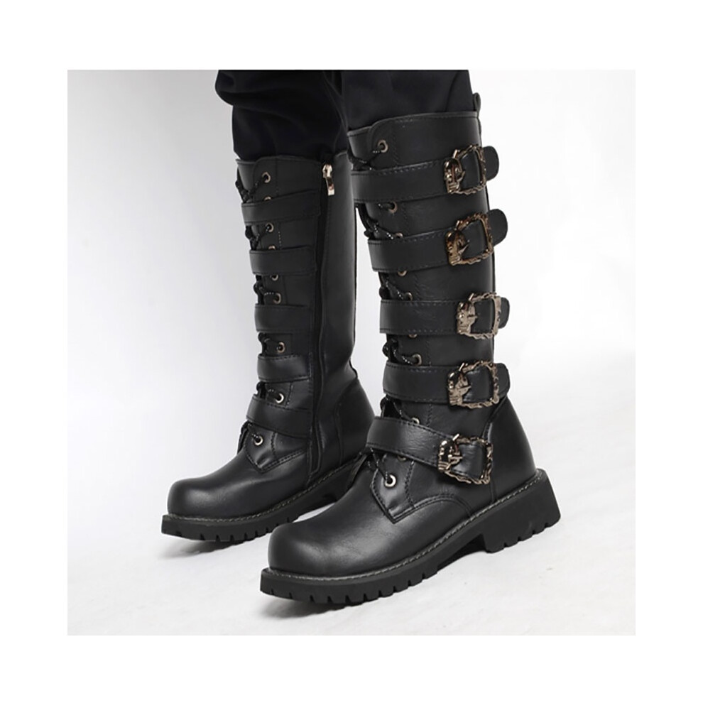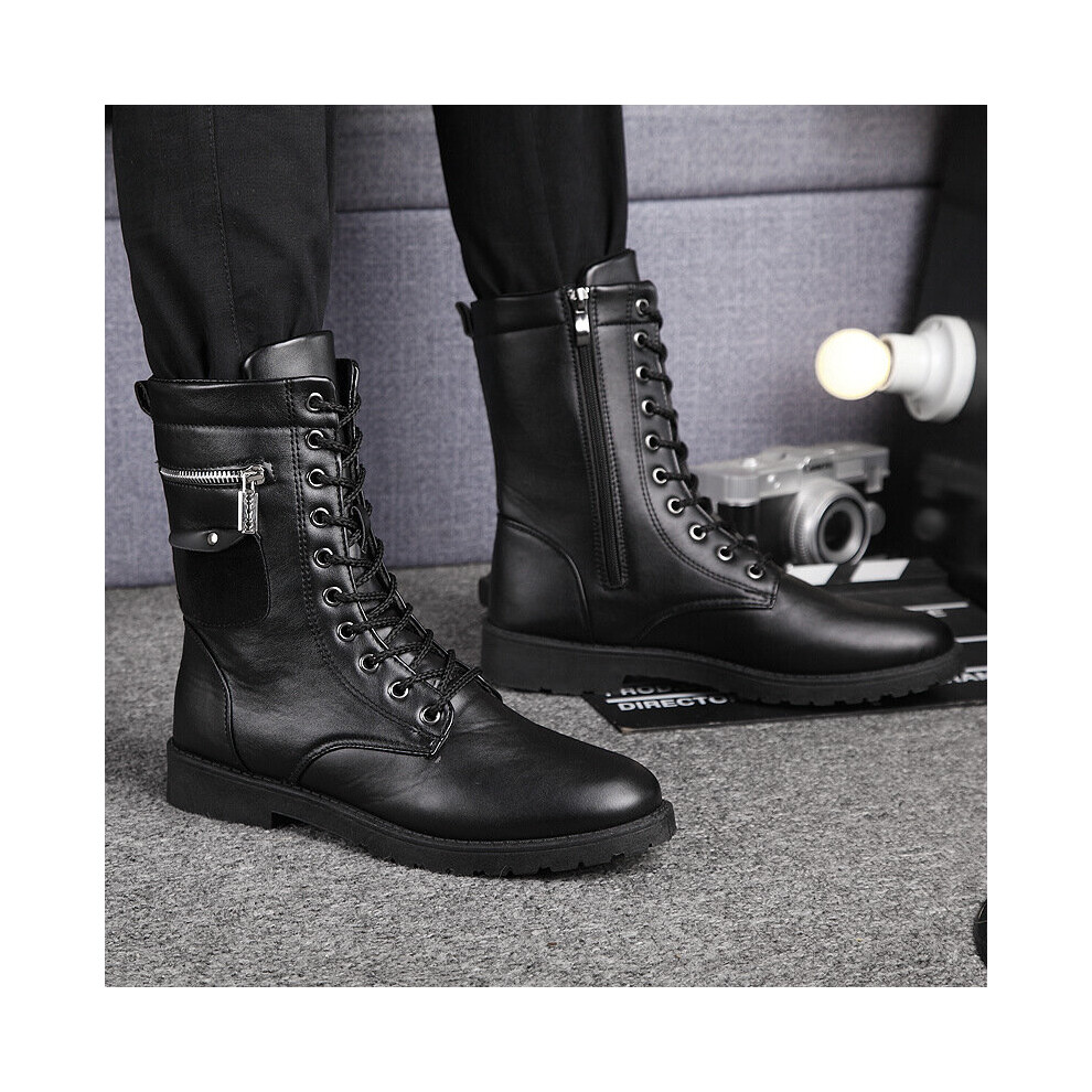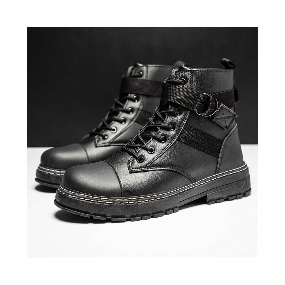 (EU40=Foot Length25cm) Army Boot Men Military Pu Leather Combat Metal Buckle Male Punk Boots Motorcycle
