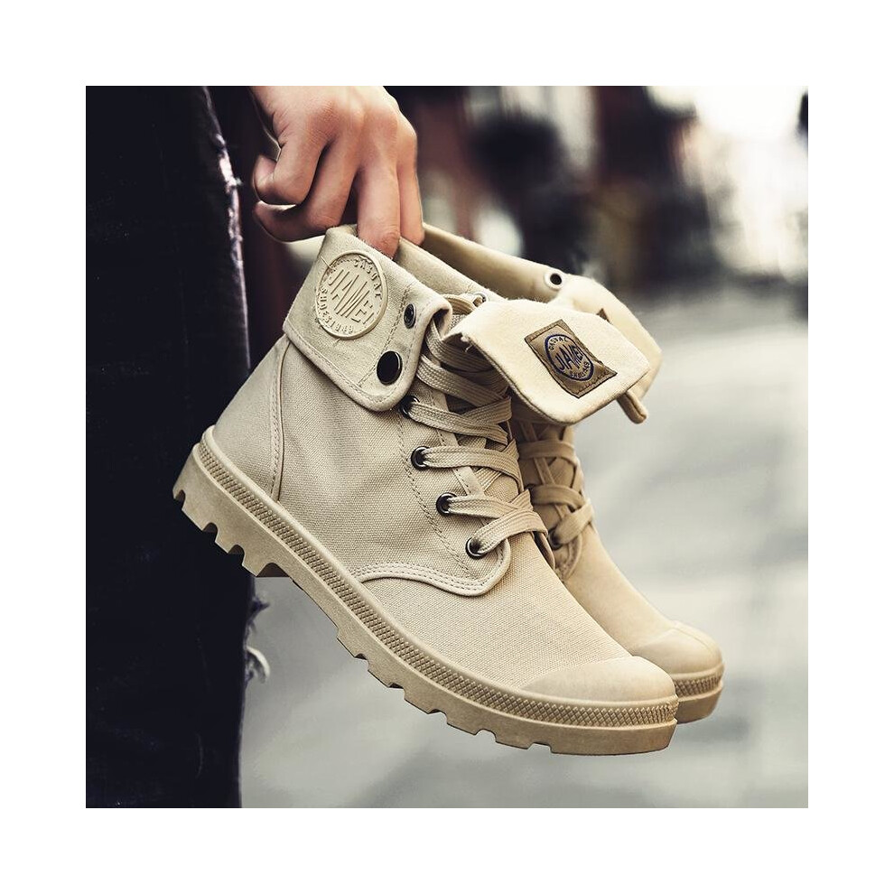 Top Canvas Men Boots Lace Up Male Canvas Shoe Ankle Botas Cowboy Motorcycle Boots Military Desert Palladium2021
