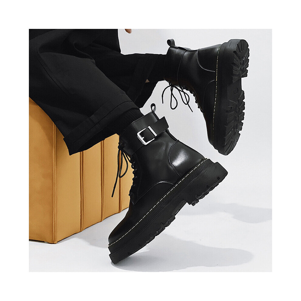 (EU42=Foot Length26cm) Men Army Boot Military Pu Leather Combat Metal Buckle Male Punk Boots Motorcycle