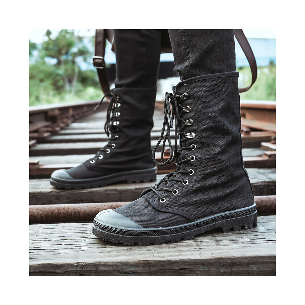 Anvas Men Boots Spring Men Casual Shoes Mid-calf Male Military Tactical Boots Lace Up Comfortable Man Sneakers