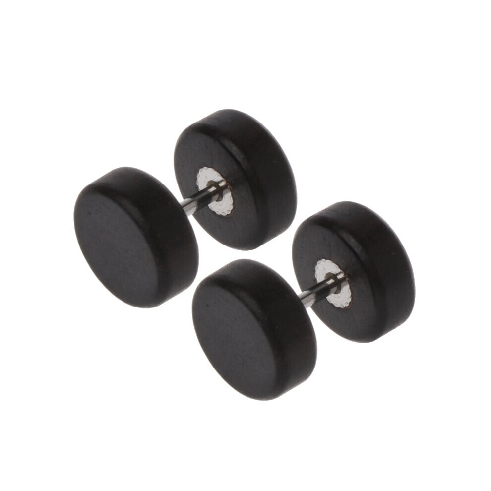 (BK White) Gothic Punk Wood Earrings Female Male Earring Stud Dumbell Barbell Double Side Round Earings For Unisex Jewerly