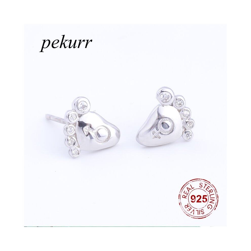Real 925 Sterling Silver Zircon Male and female Sign Little Feet Stud Earrings For Women Jewelry Girls Brinco