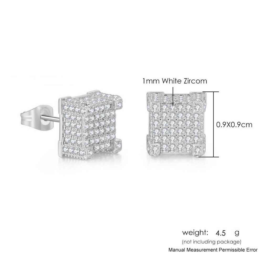Squares Hip-hop Iced Out Stud Earrings for Men Male Ice Studded Zirconia Piercing Personality Jewelry for Women