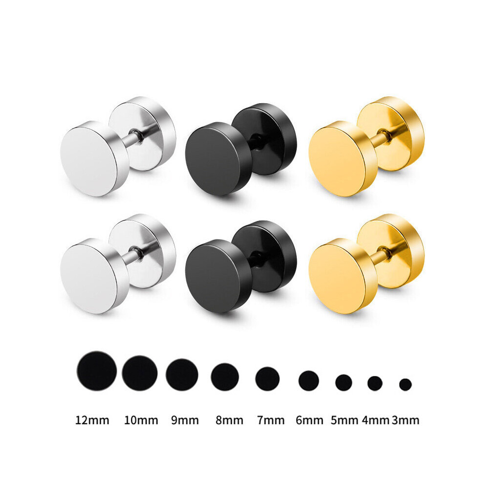 (Black) 1 Pair Punk Earrings Double Sided Round Bolt Stud Earrings Male Gothic Barbell Earrings Men women Jewelry Gift