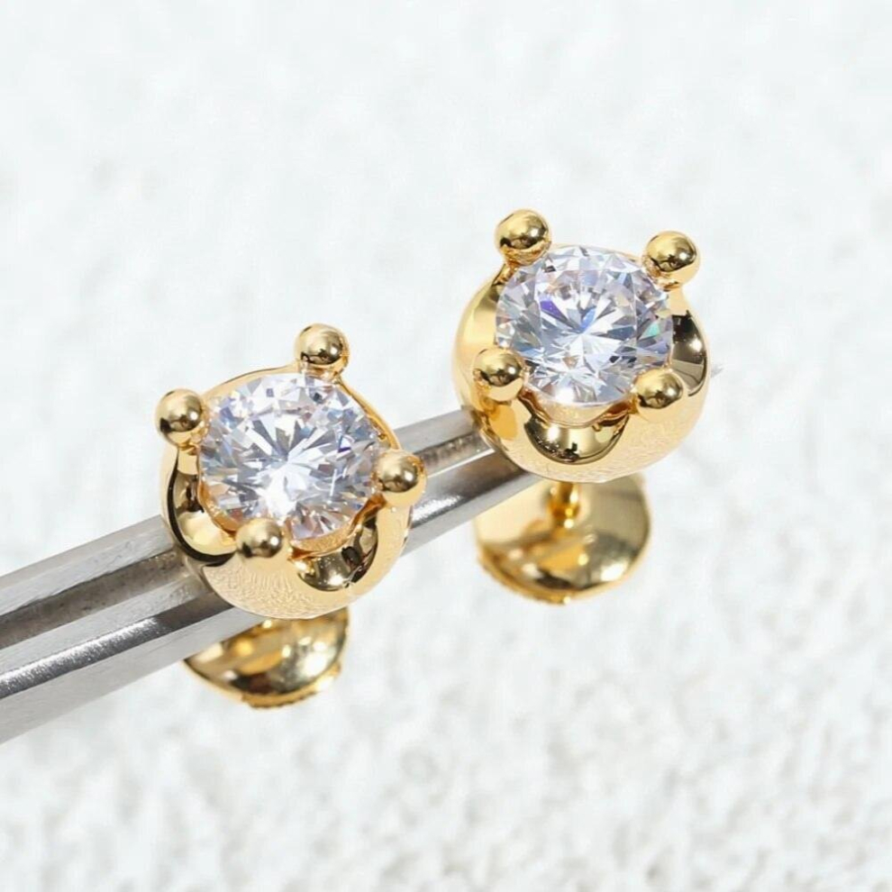 Classical Minimalism 1 Stone Stud Earrings 925 Sterling Silver For Women Male Crystal Jewelry