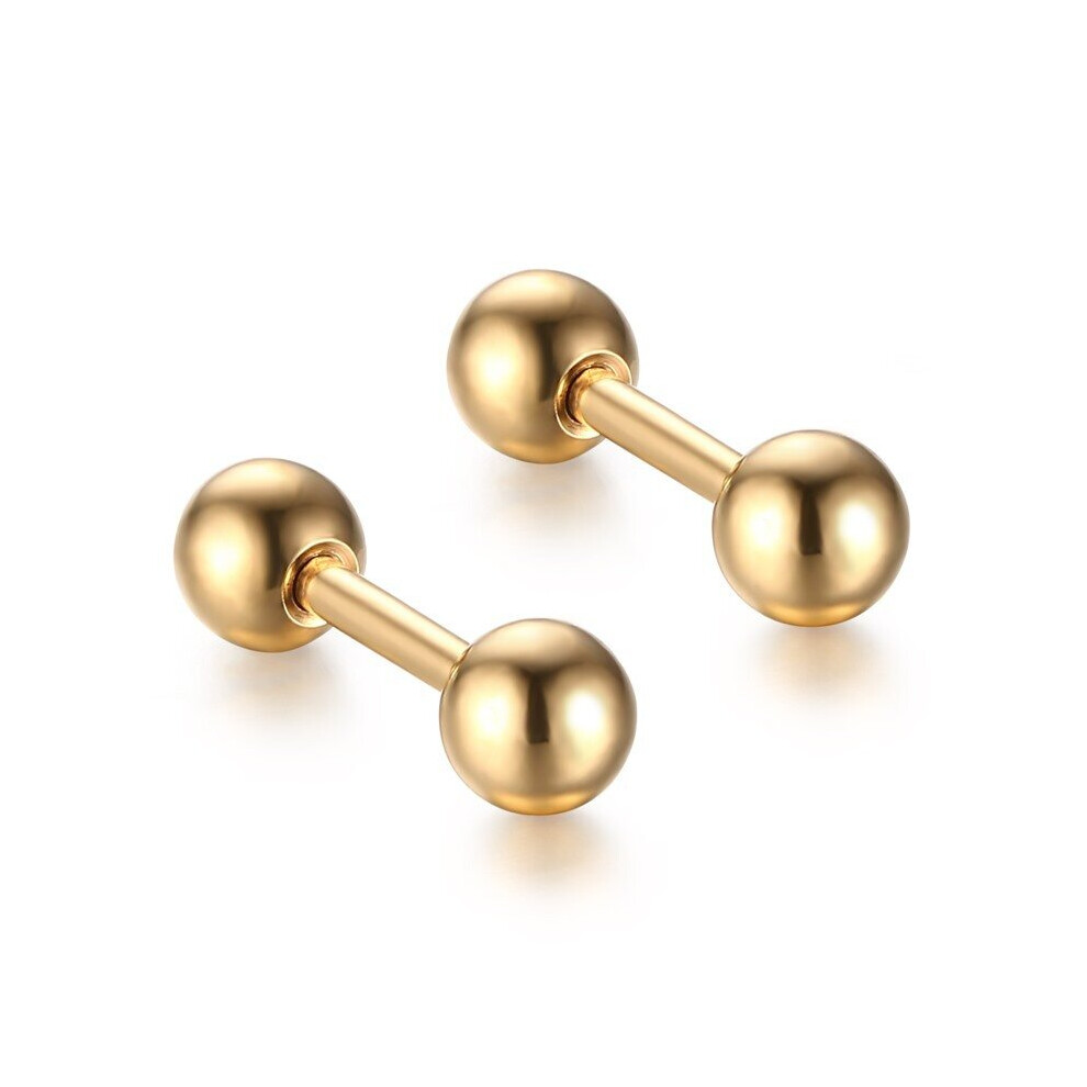(Light Yellow Gold Color, Other) Vintage Unisex Barbell Men Ear Piercing Stud Earrings Funny Punk Style Male Female earings Jewelry Retro