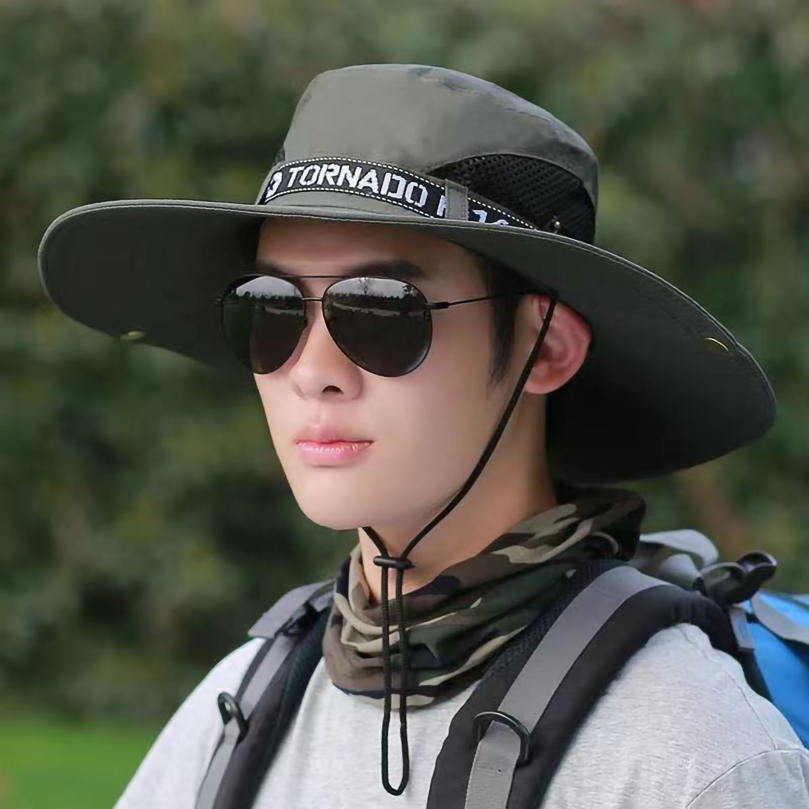 Green Male Sun Hat Summer Fashionable Big Brim Semi Breathable Men Fisherma OU