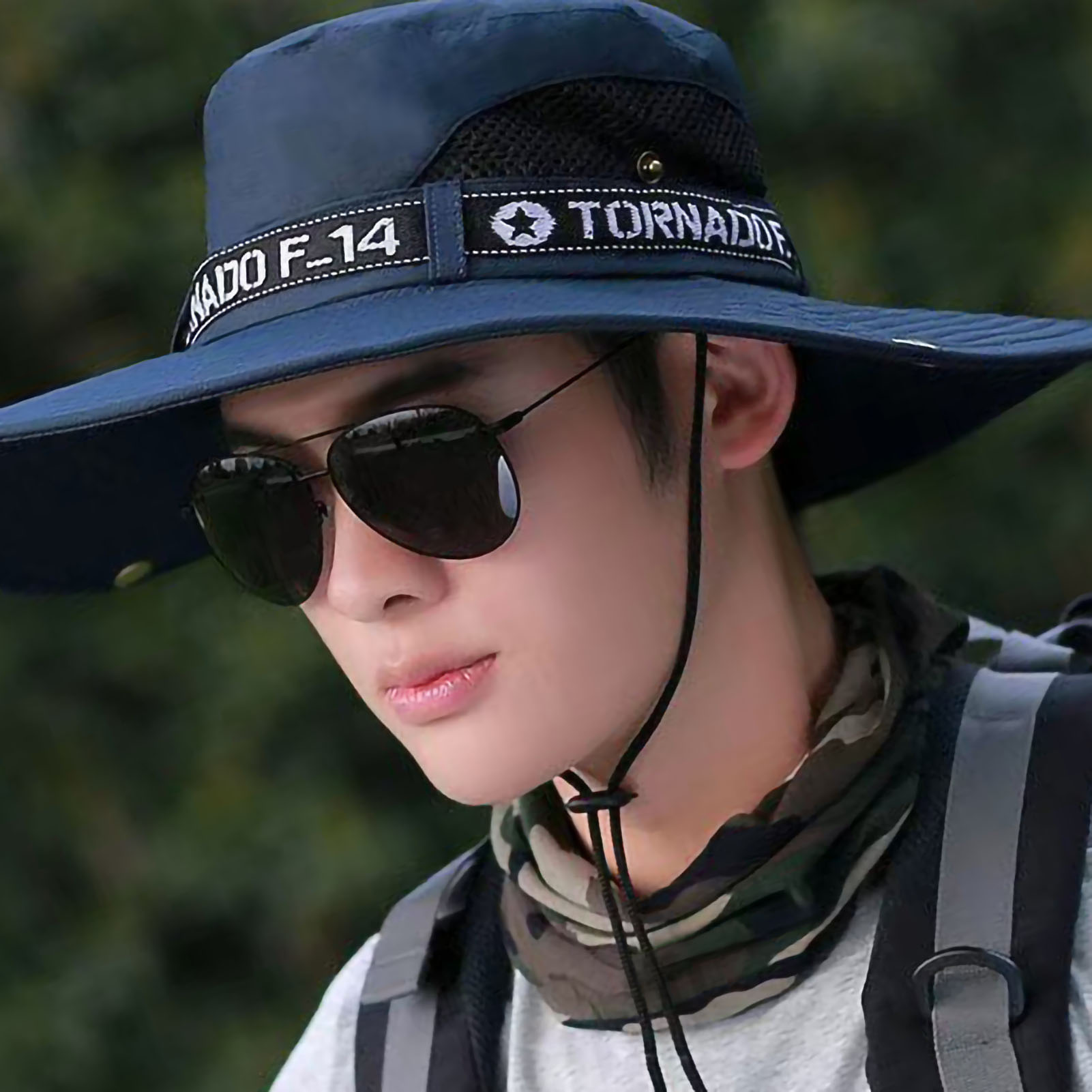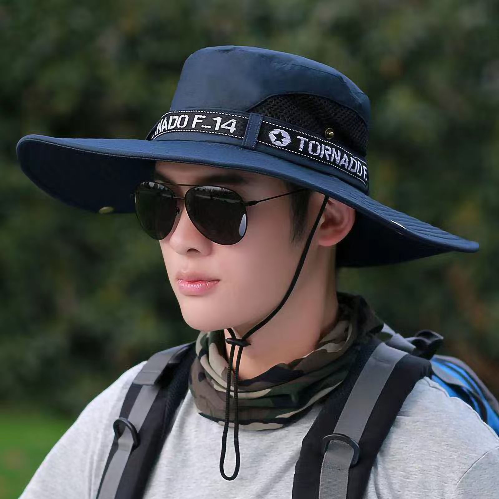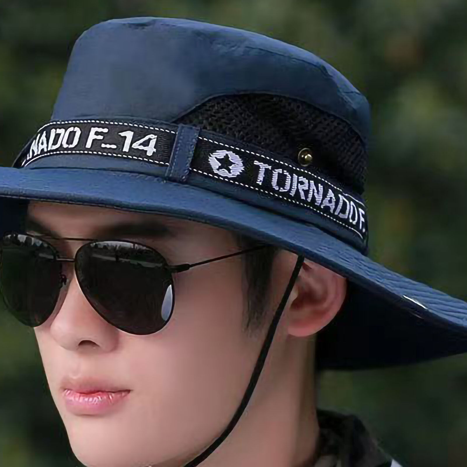 Blue Male Sun Hat Summer Fashionable Big Brim Semi Breathable Men Fisherman OU