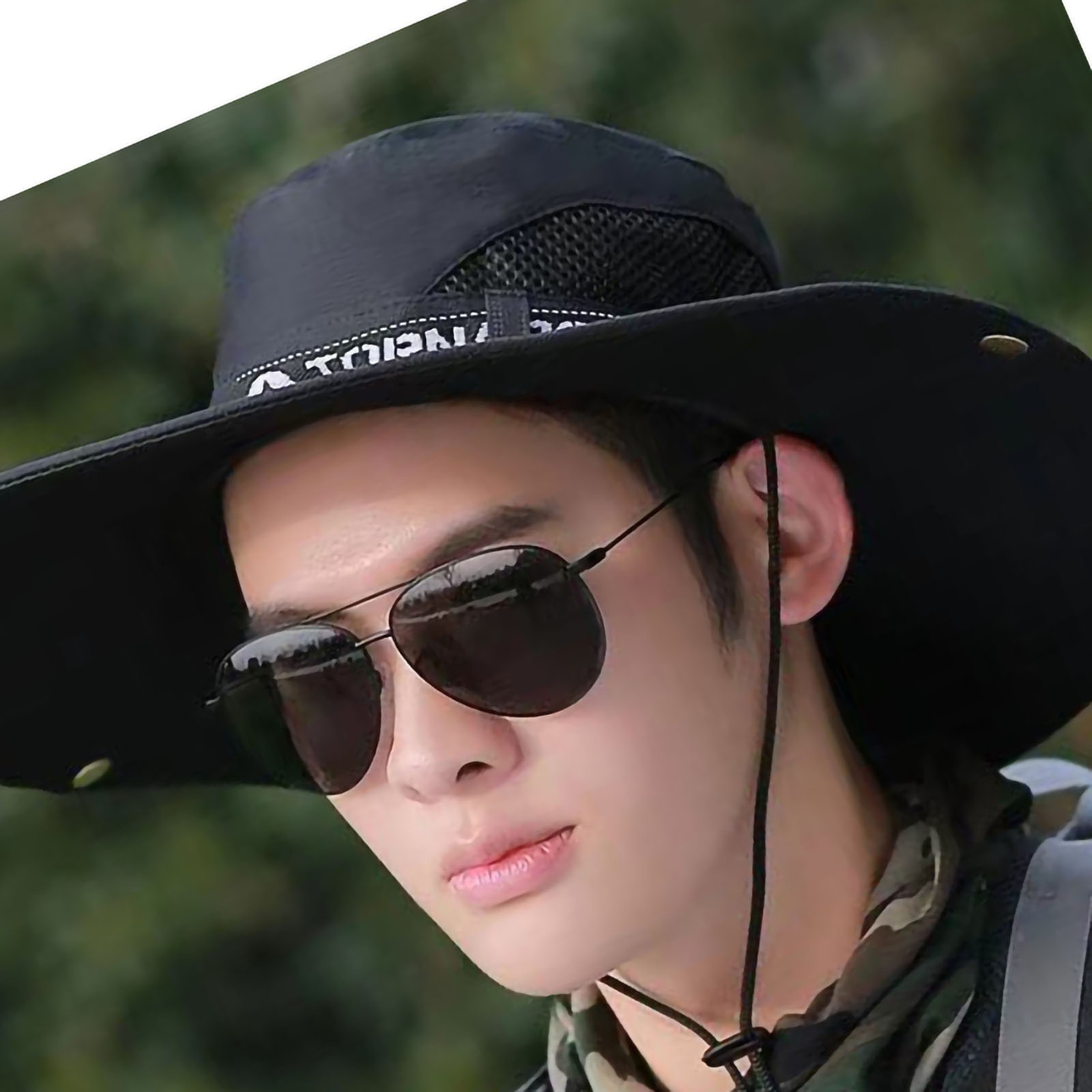 Black Male Sun Hat Summer Fashionable Big Brim Semi Breathable Men Fisherma SG