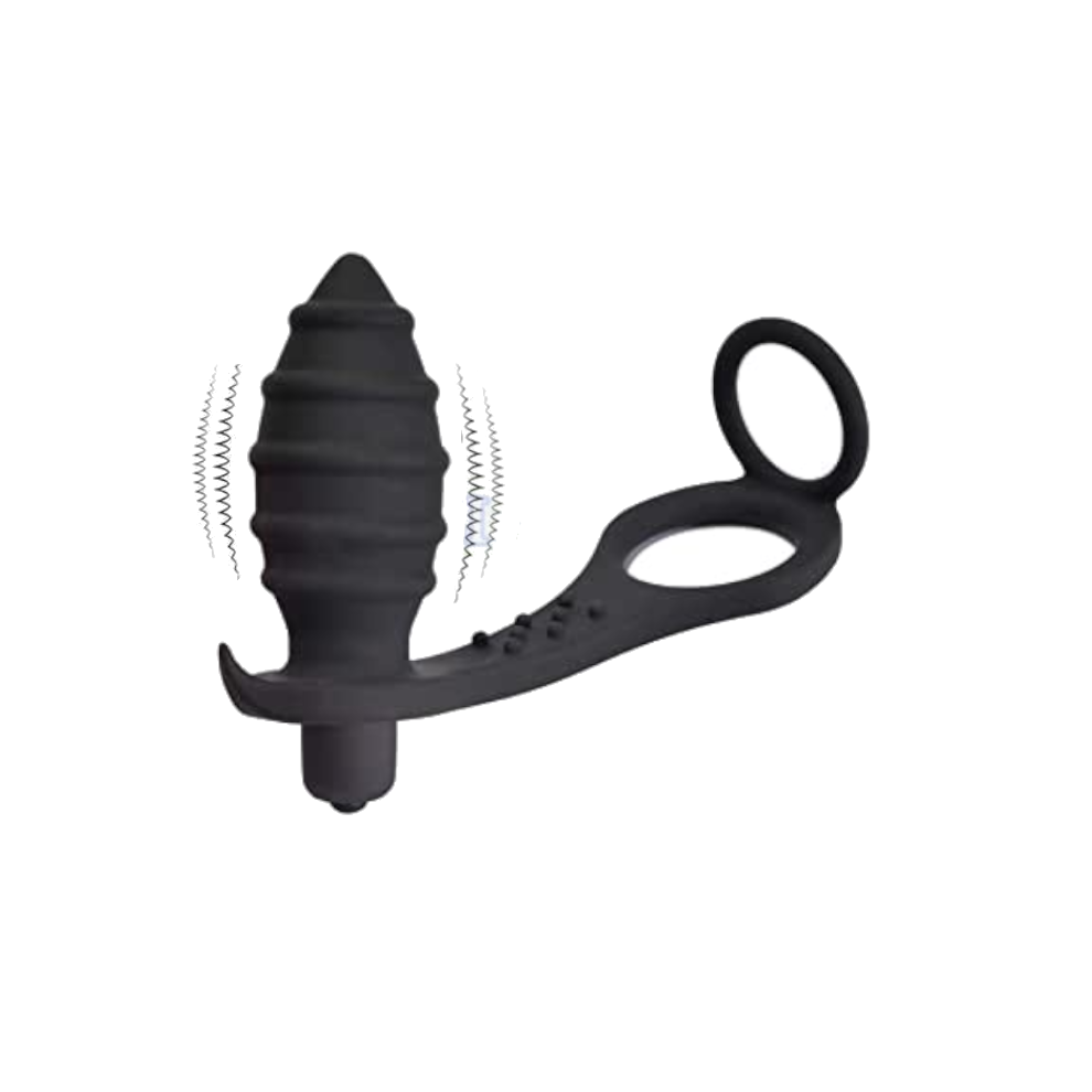 (Black, A) Male Prostate Vibrator Massage Anal Butt Plug Delay Ring Male Sex Toy