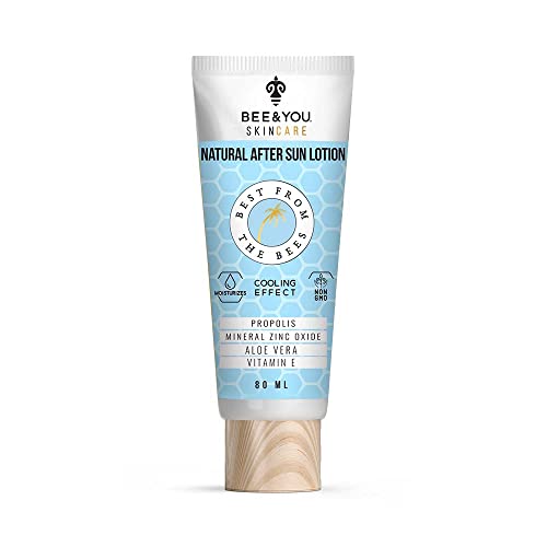 BEE and You After Sun Lotion, Aloe Vera, Propolis Extract, Cooling, Mineral-Based Zinc Oxide, Vitamin E, 100% Natural Sunburn Relief Treatment, 80ml